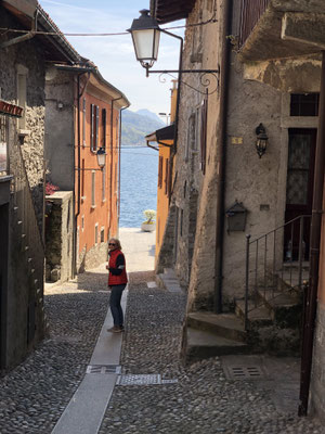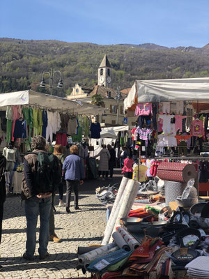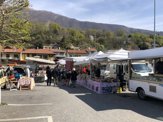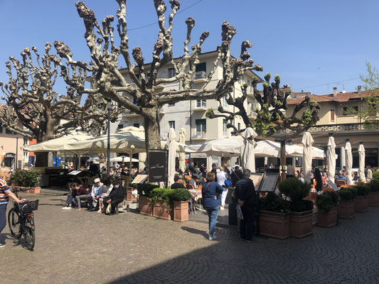Kurz hinter dem Lago Maggiore befindet sich der Mergozzo See mit dem gleichnamigen kleinen Ort. Erstmals durfte Paula in ihrem Fahrradanhänger mitfahren. In Mergozzo lockte einmal mehr ein Wochenmarkt. Die Fahrt dorthin ging teilweise über Fahrradwege. Unsere Räder haben wir im Ort am Seeufer geparkt und sind dann zu Fuß zu diesen sehenswerten kleinen Ort zum Wochenmarkt gelaufen.....und Überraschung, der war noch kleiner als der in Baveno. Also wieder Geld gespart. Dann setzt man sich doch lieber in ein Café am See und trinkt einen Espresso bzw. Cappuccino.