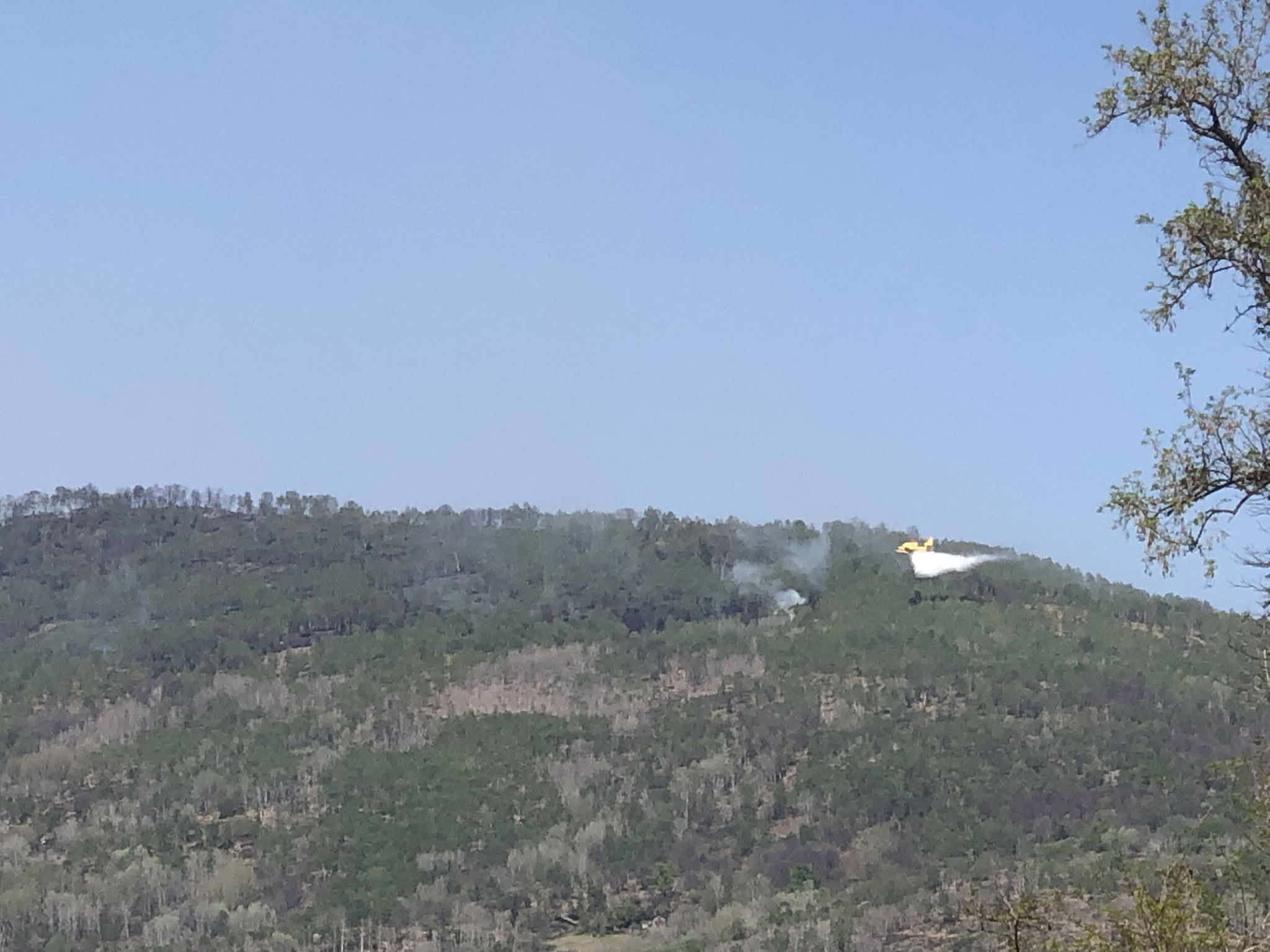 Wir hatten ständig trockenes und warmes Wetter, teilweise bis 26°. Meine Nase schälte sich zweimal und ich mußte mir die Vorwürfe meiner "Ex-Verlobten" gefallen lassen, da ich nur selten Sonnencreme benutzte. Bei diesem Wetter kam es wie es kommen mußte .... Waldbrand !! Fünf Tage waren die Löschflugzeuge im Einsatz um Brände zu löschen.