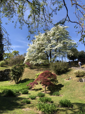 Endlich darf auch Paula etwas besuchen. Im botanischen Garten der Villa Taranto sind Hunde erlaubt. Es war unser letzter Tag am Lago Maggiore, da für den nächsten Tag nach nunmehr 17 sonnigen Tagen schlechtes Wetter angesagt war.